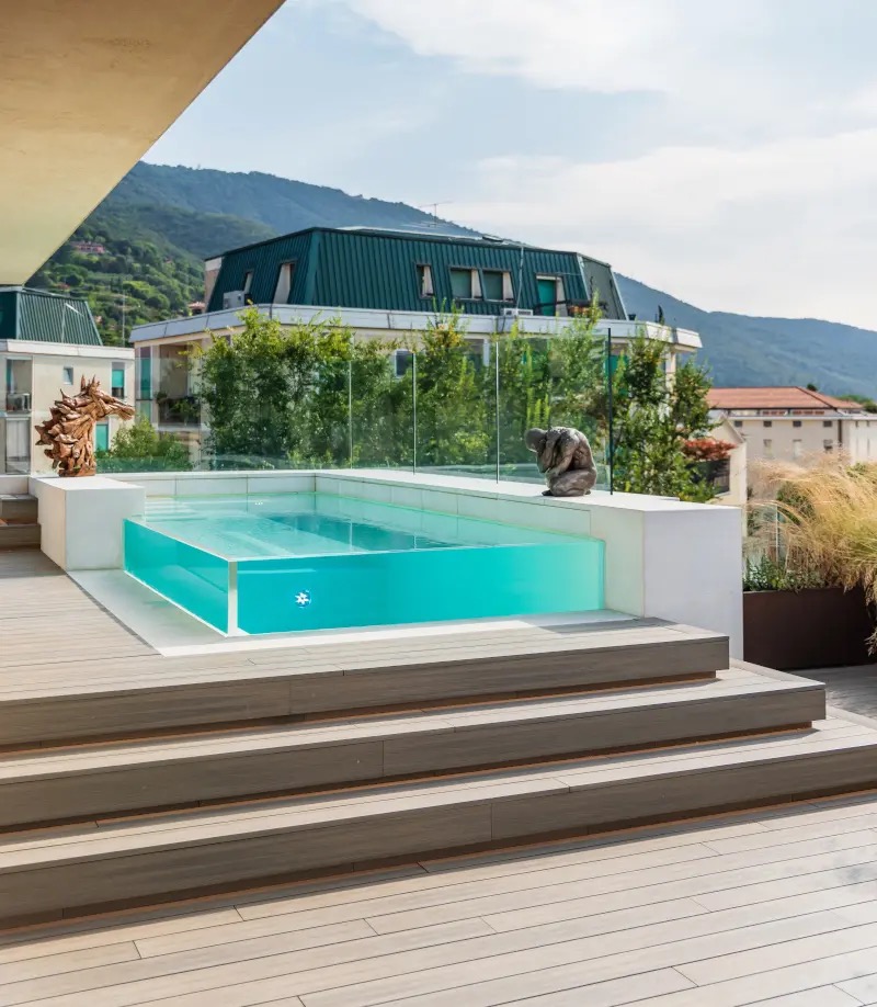 Sfruttare i pendii, creare camminamenti sopraelevati a sfioro, renderanno l'installazione armoniosa e godibile esattamente come una vera piscina, ma senza dover affrontare le necessarie richieste agli enti preposti, che spesso, causa vincoli e leggi comunali, si faticano ad avere, o si ottengono in tempi decisamente lunghi.